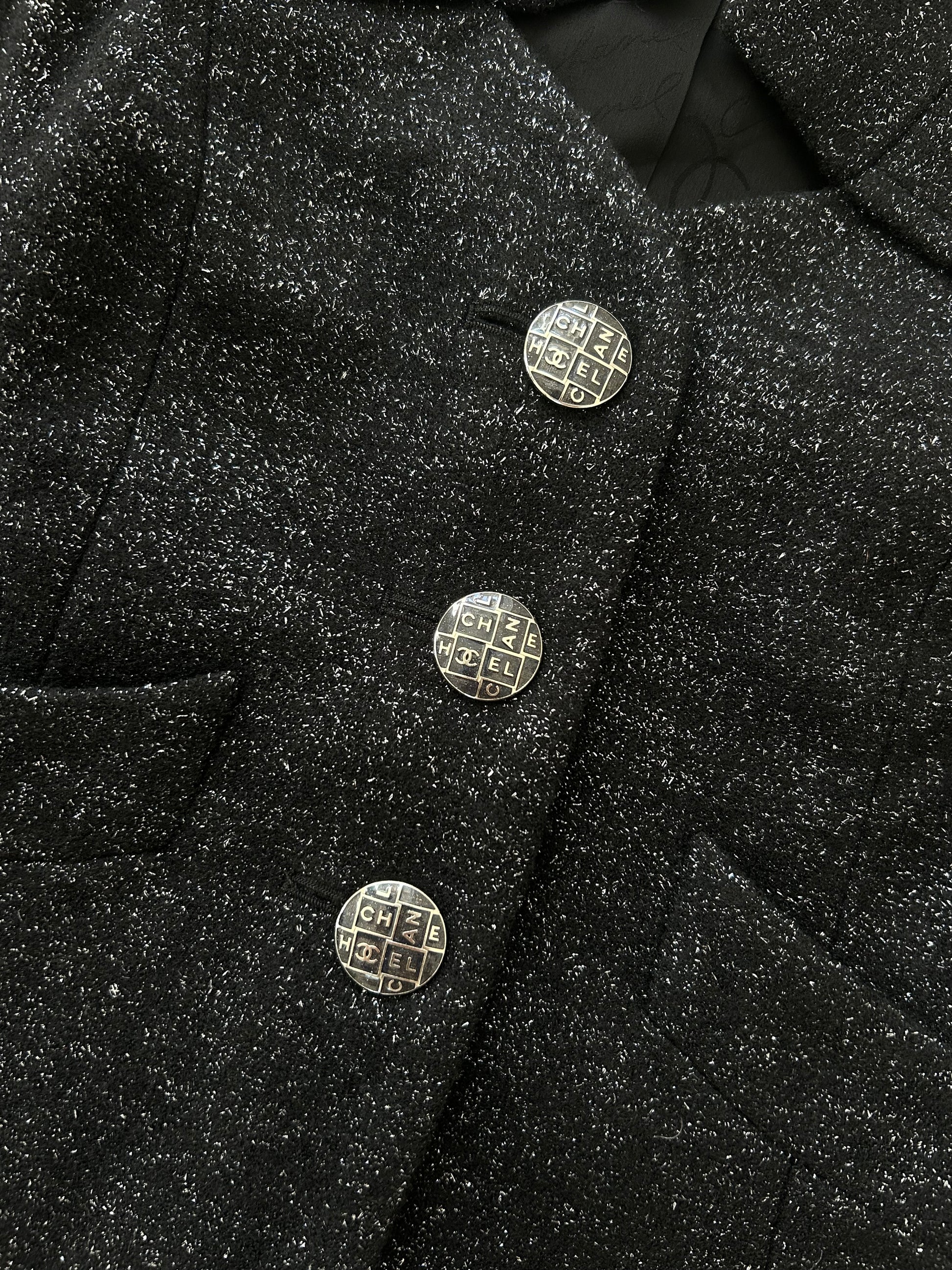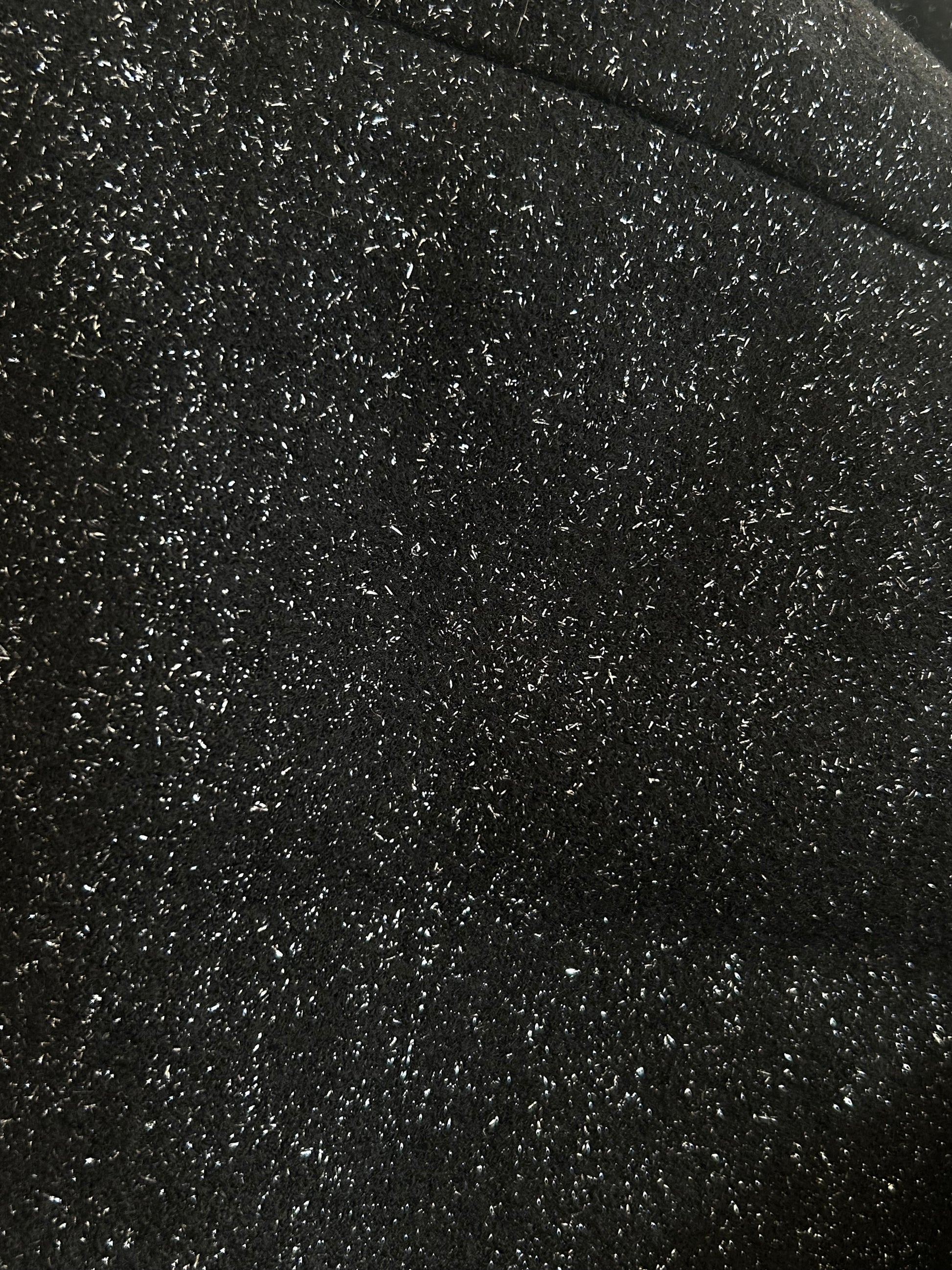 Black jacket with silver iridescent threads.