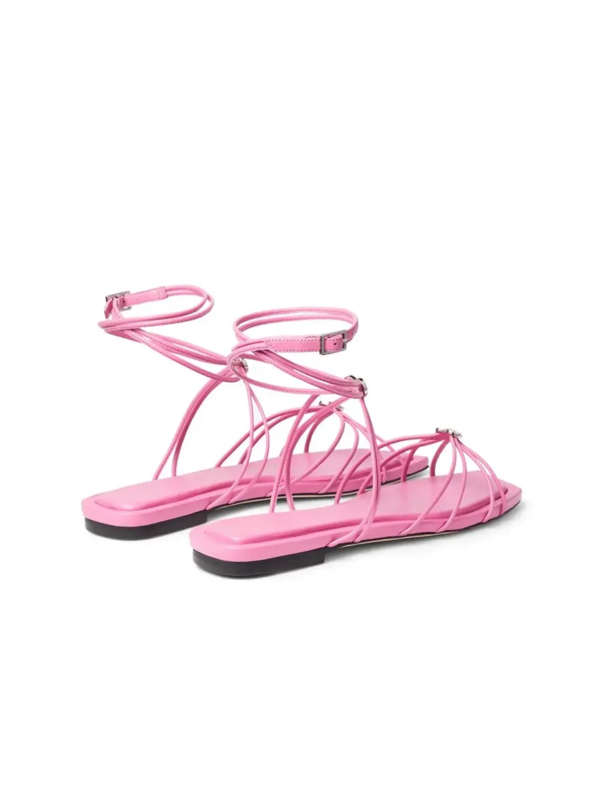 Indiya leather sandals in fuchsia pink with crystal heart.