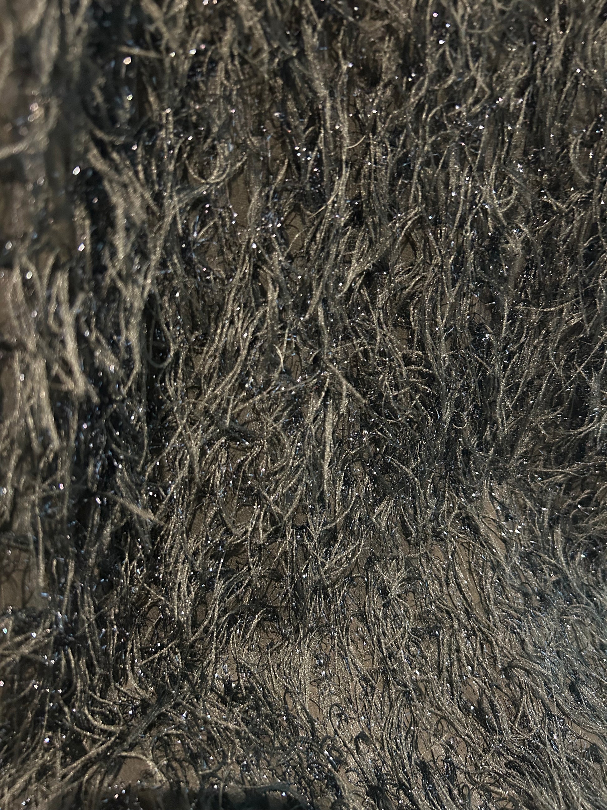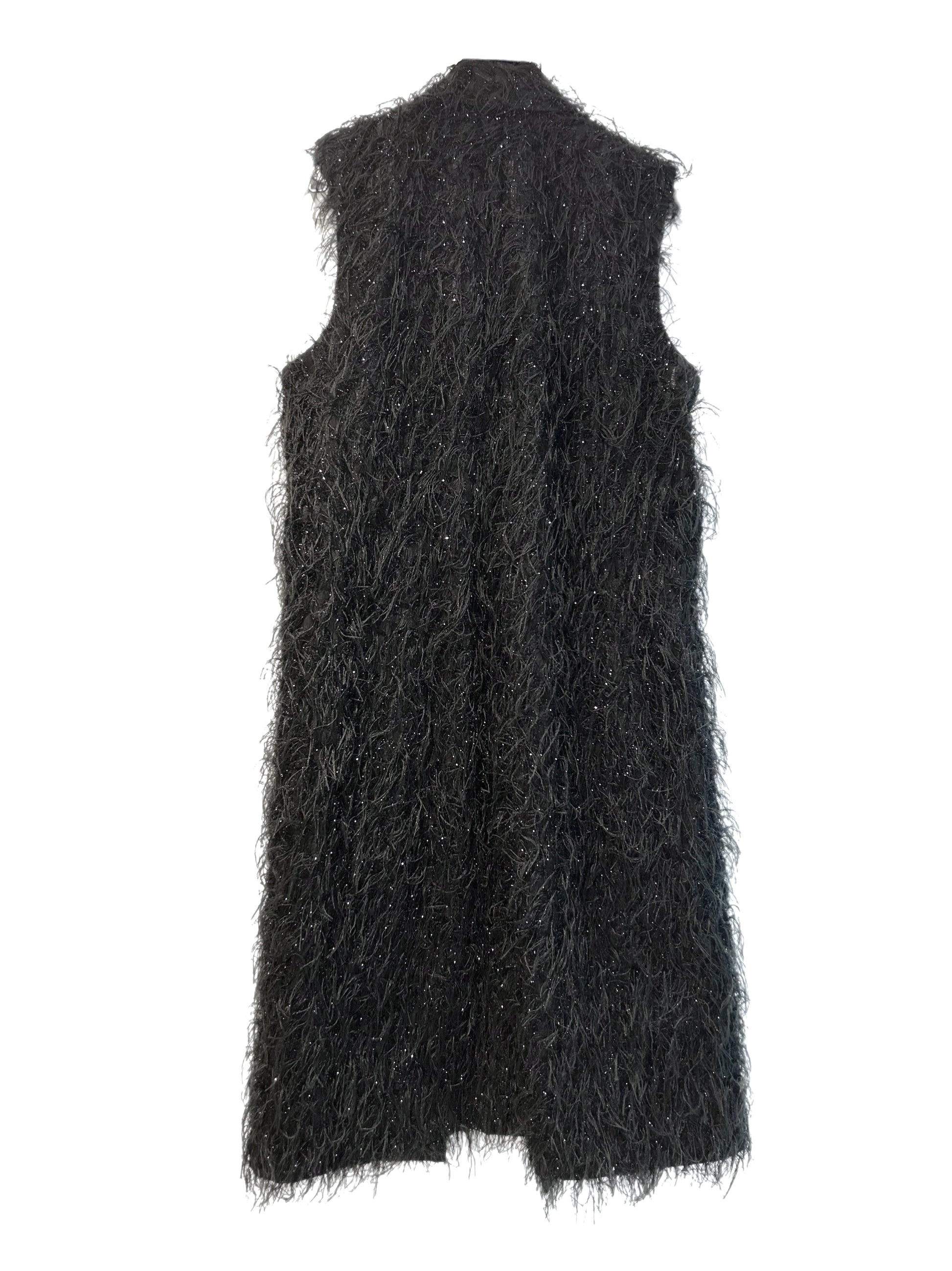 Long navy-blue cardigan with shimmering fringe collars and slits.