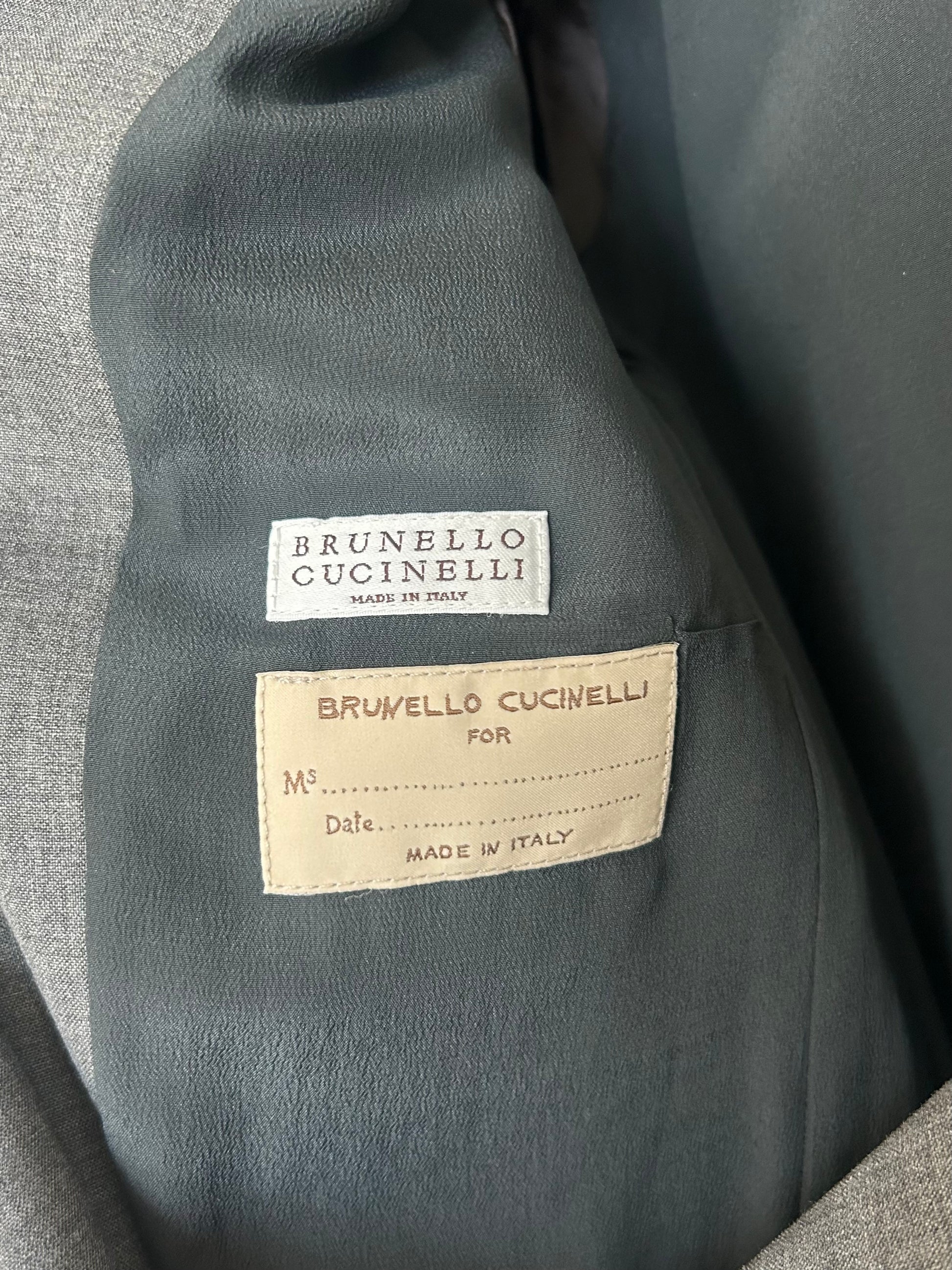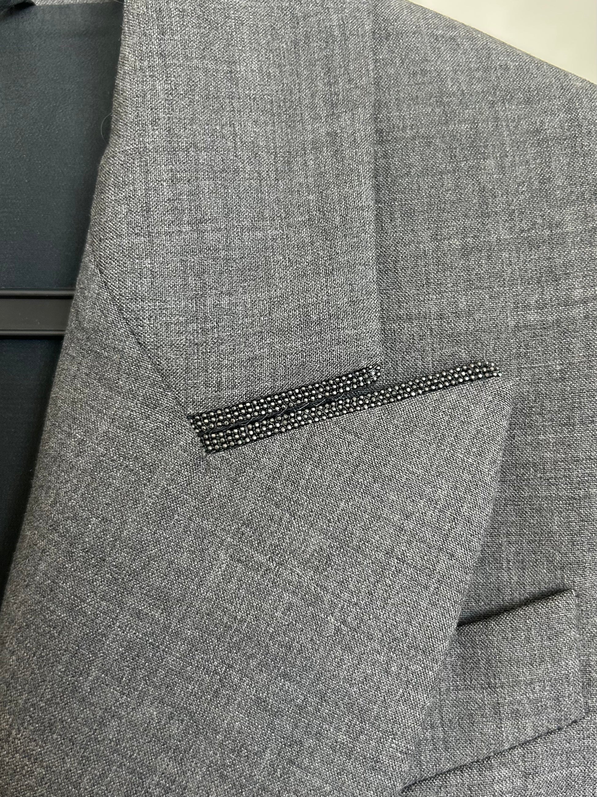 Oversized double-breasted blazer in anthracite gray with Monile detail on the collar.